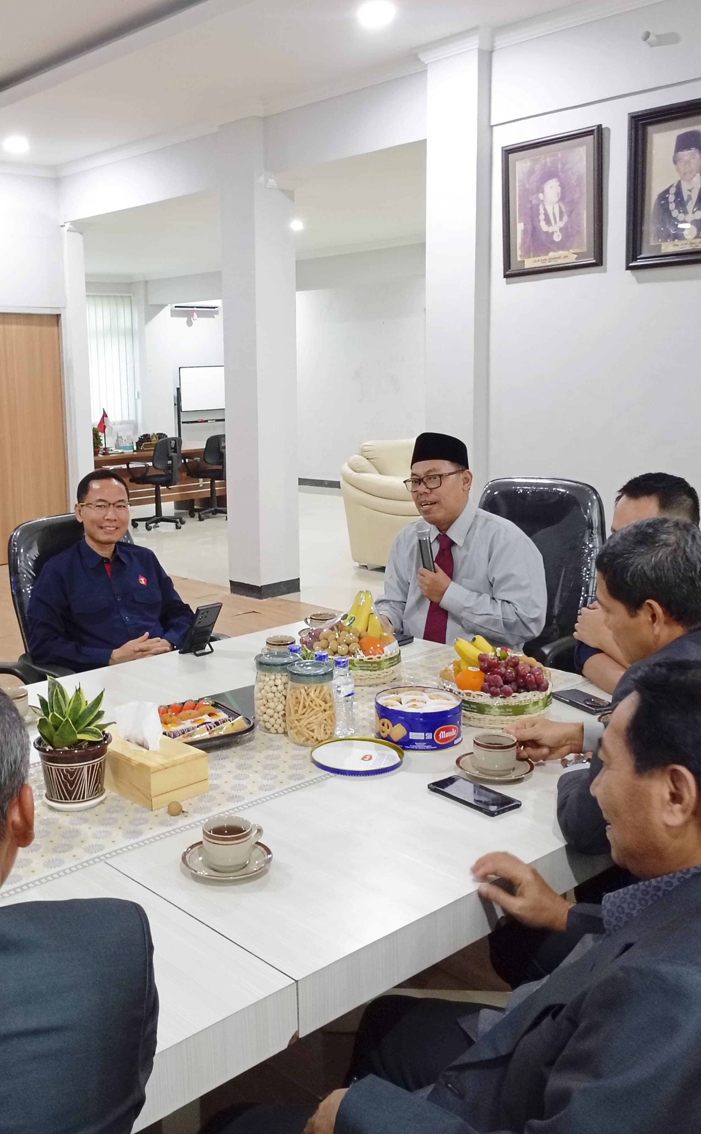 Accompanying the Rector were Vice Rector I, Prof. Dr. M. Khusna Amal, S.Ag., M.Si., Vice Rector II, Dr. Drs. H. Ainur Rafik, M.Ag., Vice Rector III, Dr. Khoirul Faizin, M.Ag., Head of Internal Audit Force, Dr. Retna Anggitaningsih, S.E., M.M., Head of Career Development Unit, Dr. Rusydi Bayagub, S.Ag., M.Pd.I., Head of TIPD Unit, Dr. Subakri, S.Ag., M.Pd.I., Head of the Cooperation and International Office, Dr. Achmad Fathor Rosyid, S.Sos., M.Si., and other staff of UIN KHAS Jember.